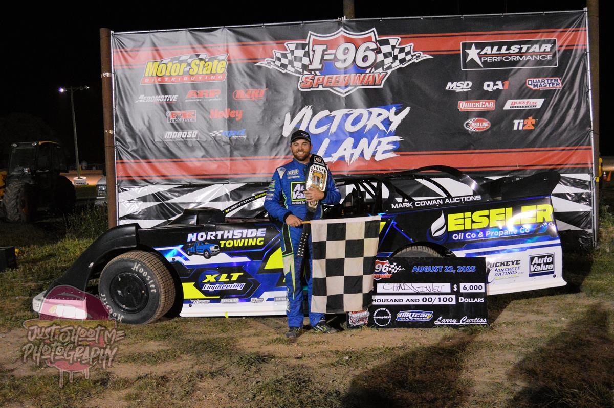 The Late Model Throwdown was originally advertised as $5,000 to win until one of I-96 Speedways biggest supporters and partners, Dave's Dry Dock, donated an extra $1,000 to make it $6,000 to win. It seemed like some drivers had a sense of urgency as we would get a couple of pile ups that took out heavy contenders. Along with heavy hitters having mechanical issues, taking a large portion of hopefuls out of contention. However, even if we didn't lose a few favorites, I'm not sure anyone had anything for winner, #42 Chad Finley. Finley would lead from start to finish with a few attempts by #18 Chase Burda at the lead. Burda’s best chance came as leaders caught the back of the pack and he would close the gap between he and Finley considerably until a late race caution would line them back up and Finley would hold on for the win. 1st-#42 Chad Finley 2nd-#18 Chase Burda 3rd-#11G Greg Gokey 4th-#15B Dave Baker 5th-#27 Eric Spangler. Heat Winners were #4 Travis Stemler, #6M Dona Marcoullier, #21 Logan Nickerson and Spangler. A new track record was set by Chad Finley with a 15.265. Last Chance race was won by #06 Jake Rendel.